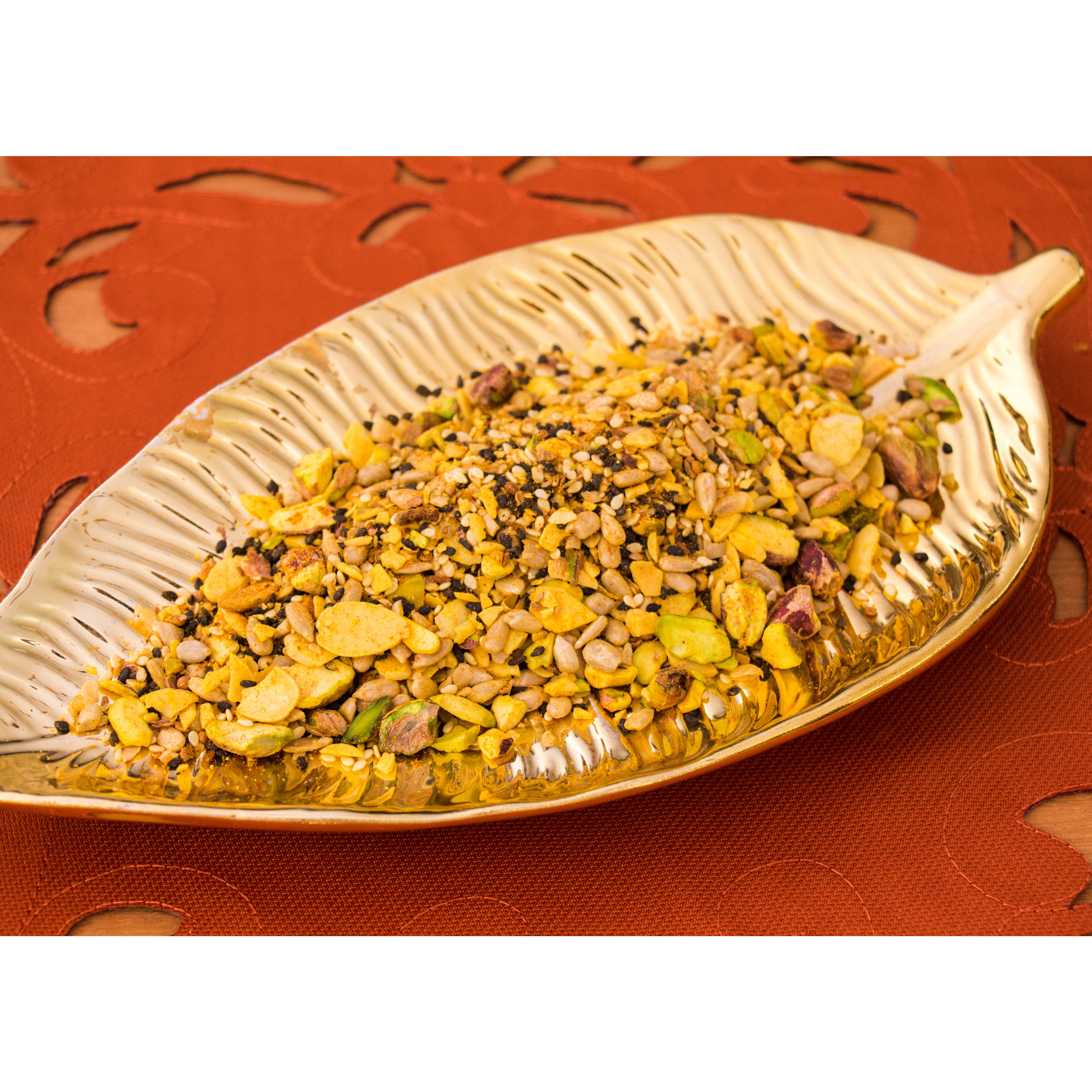 Dukkah é um tempero de origem egípcia, feito com sementes, castanhas e especiarias, perfeito para para colocar em saladas, pratos cremosos como coalhadas homus, finalizar legumes e até temperar carnes, peixes ou aves. A nossa versão de dukkah é mais “pedaçuda”, feita com pistache, mêndoas laminadas, semente de girassol, gergelim preto e branco, semente de coentro, cominho e erva doce, mix de pimentas, cúrcuma e páprica doce. LOW CARB, ZERO GLÚTEN E VEGANO.