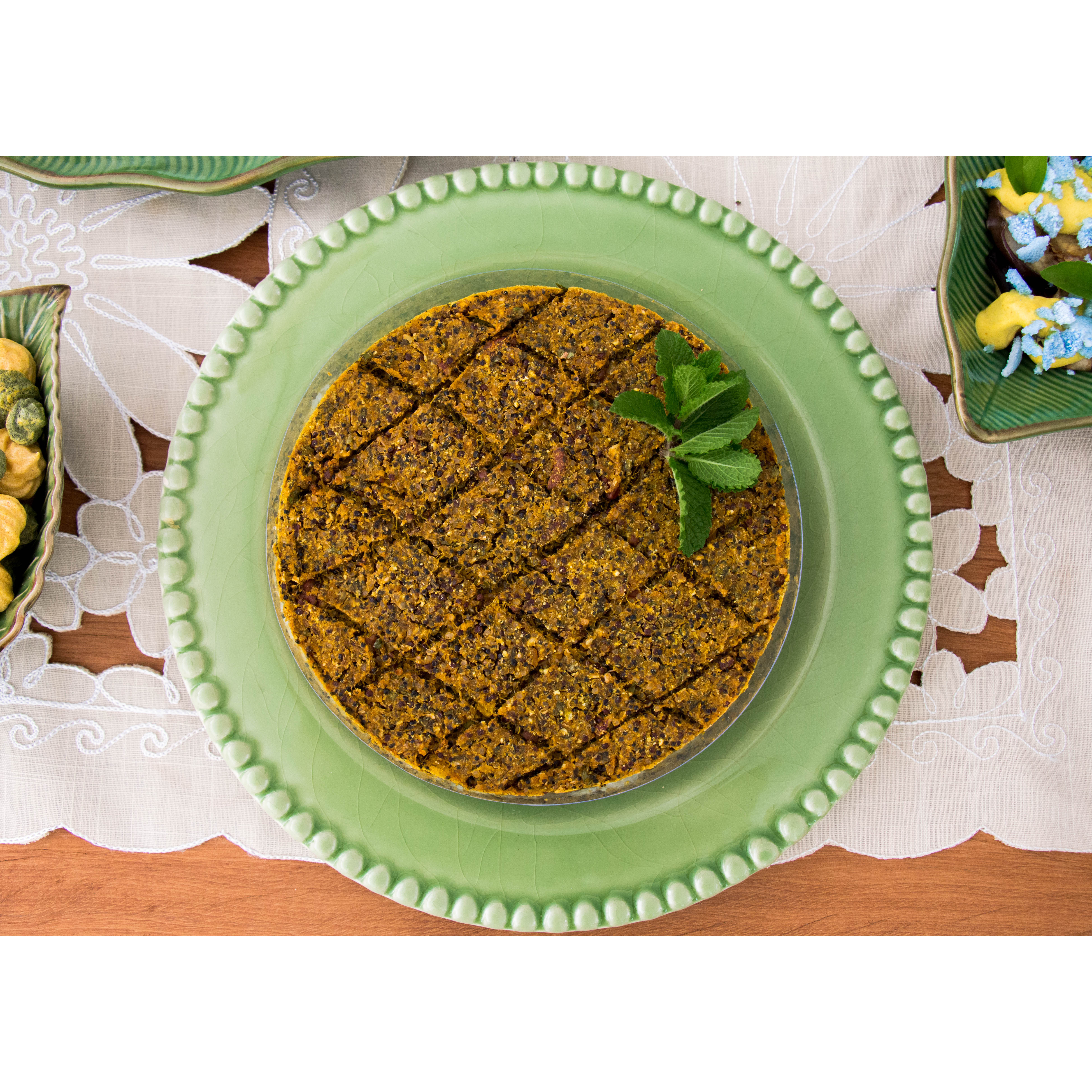 Aquela torta super coringa para servir com uma saladona! Feita com palmito pupunha, tomate e um creme super saboroso de castanha de caju com tofu orgânico. A massa é a base de farinha de amêndoas, linhaça e girassol, para finalizar, crumble de sementes de abóbora. Uma opção leve, sem glúten e lácteos, excelente para incluir no seu dia a dia! LOW CARB, ZERO GLÚTEN E ZERO LÁCTEOS.