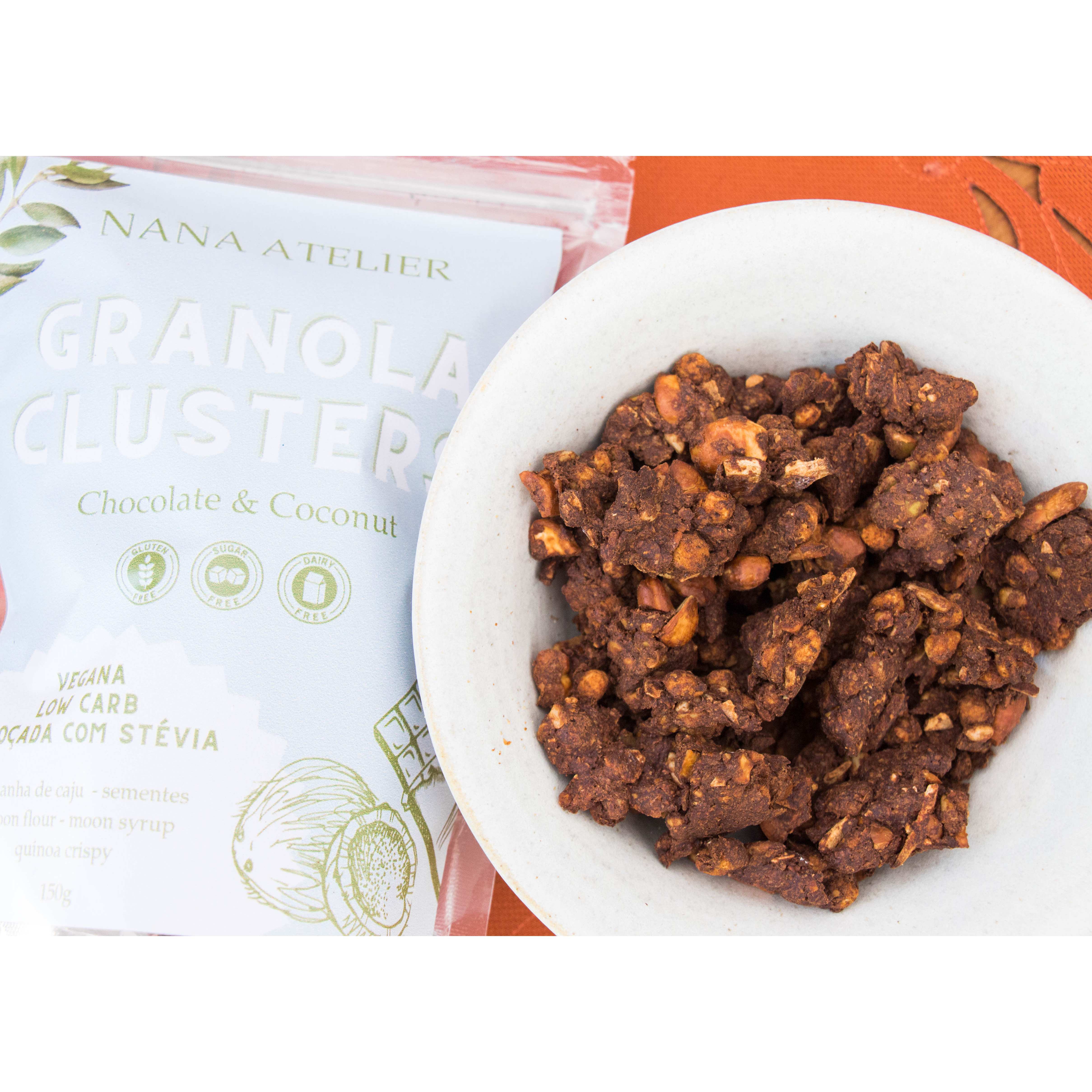 Aquela granola especial que não pode faltar na sua casa! A nossa Granola clusters vegana, é bem “pedaçuda”, crocante e com sabor equilibrado de chocolate e coco. Ela é feita com castanha de caju, sementes, crispies de quinoa, moon flour (farinha zero carbo – proteína orgânica do arroz) e é zero açúcar (adoçada com stévia). Além disso, desenvolvemos uma receita bem equilibrada em termos de macronutrientes, deixando de ser aquela granola com muito carboidrato ou muita gordura, uma opção deliciosa para incluir no iogurte, frutas, smoothies ou até consumir pura como snack. Pacote com 150g. LOW CARB, ZERO LÁCTEOS (VEGANA), ZERO GLÚTEN, AÇÚCAR E POLIÓL.