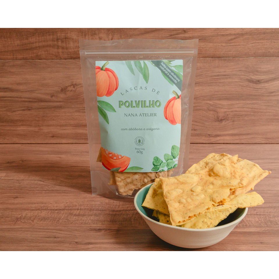 Nossas lascas de polvilho de abóbora com orégano são feitas com abóbora natural assada e azeite de oliva, além de super crocantes são saborosas e uma ótima opção para servir de aperitivo e até fazer parte do lanchinho das crianças. Pacote com 60g. ZERO LÁCTEOS E ZERO GLÚTEN.