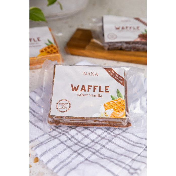 Waffle proteico, low carb e super fofinho! Disponível em dois sabores: chocolate ou neutro (vanilla). Feito com farinha de amêndoas, moon flour (farinha proteica zero carboidrato – proteína orgânica do arroz) e colágeno. Sabor neutro (vanilla). Pacote com 1 unidade (65g) – congelado. ZERO GLÚTEN, LÁCTEOS, AÇÚCAR E POLÍOL.
